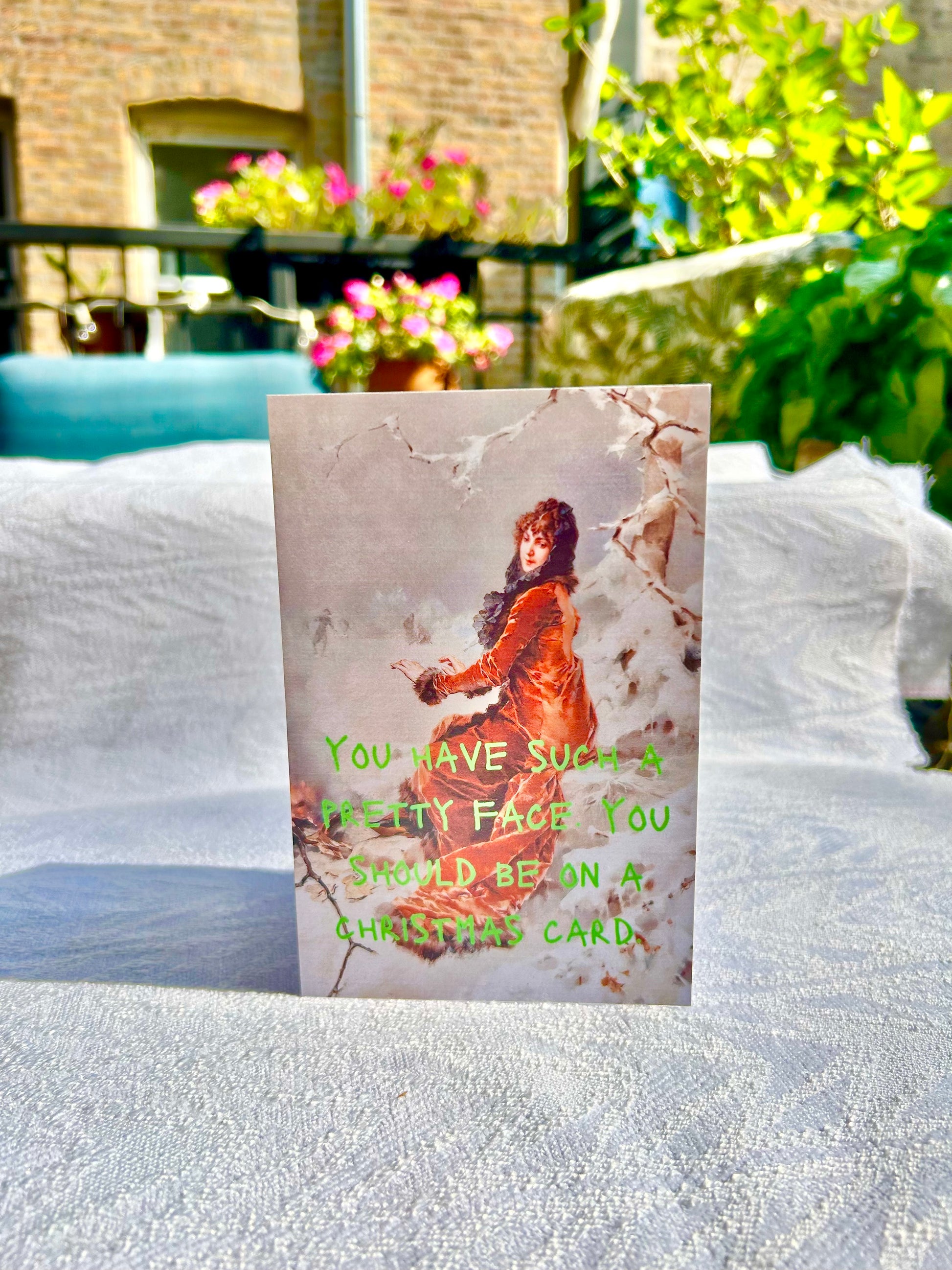 Our greeting cards are a vintage print with neon graffiti writing. 4x6 with a white envelope included.