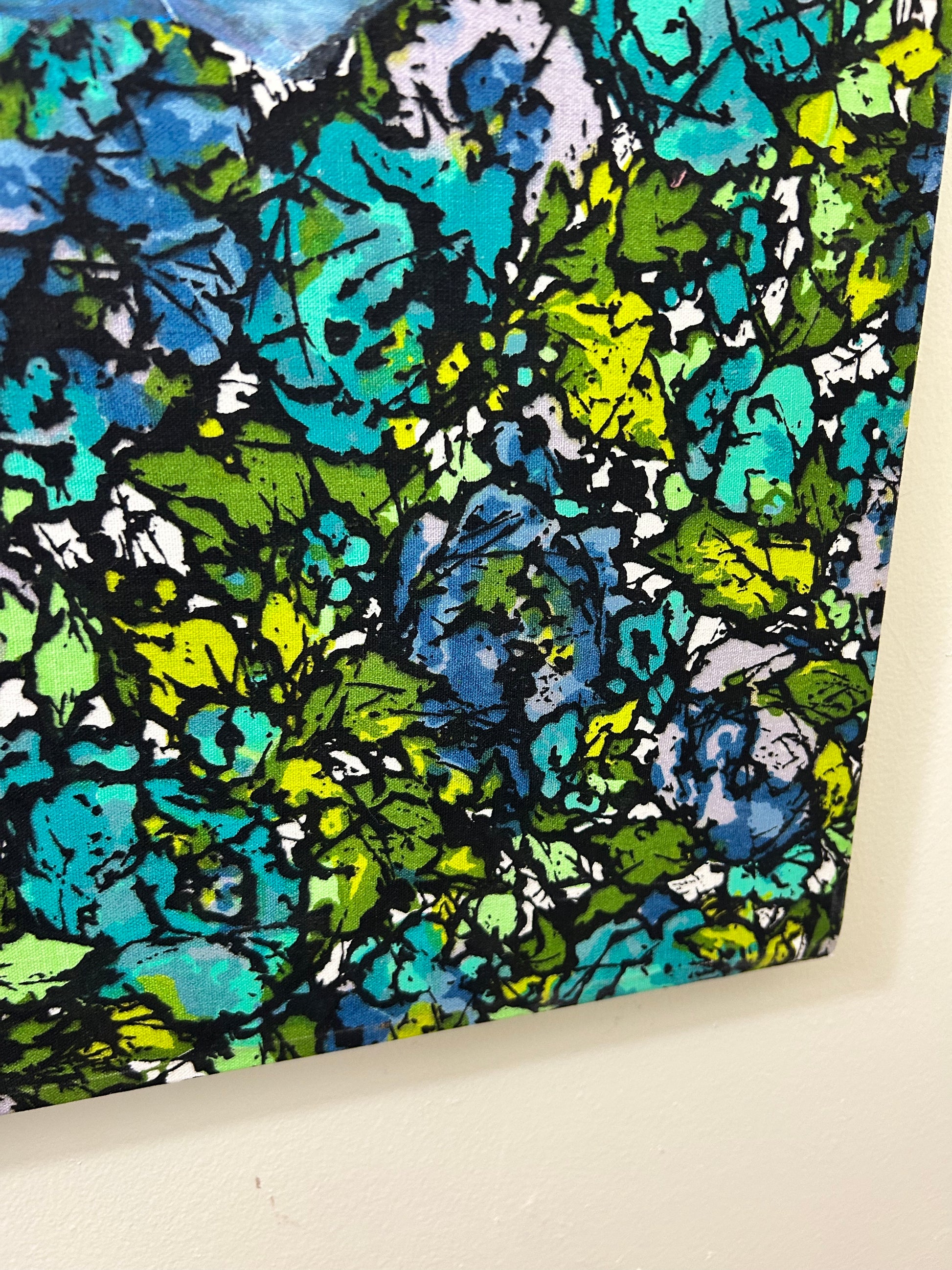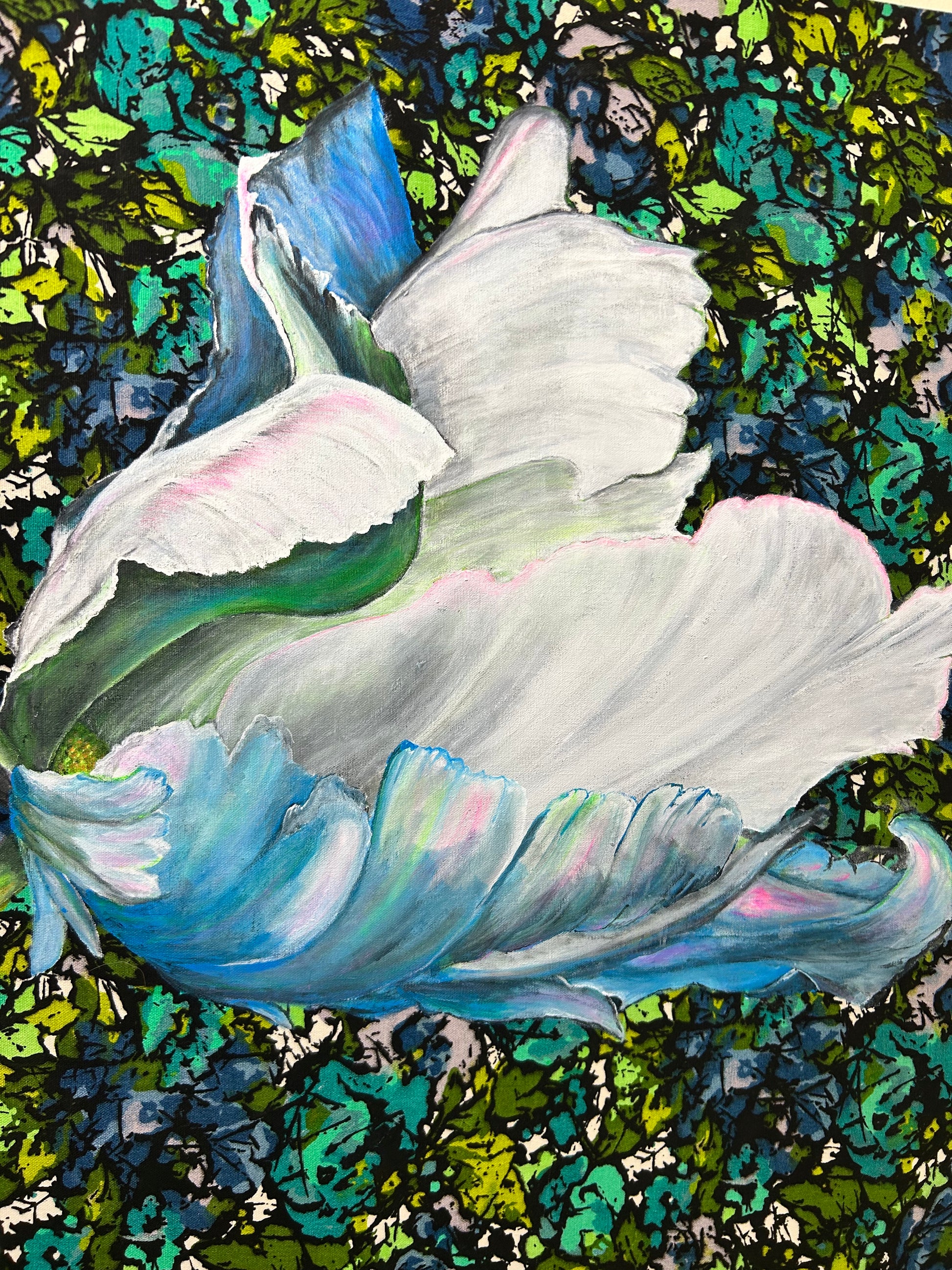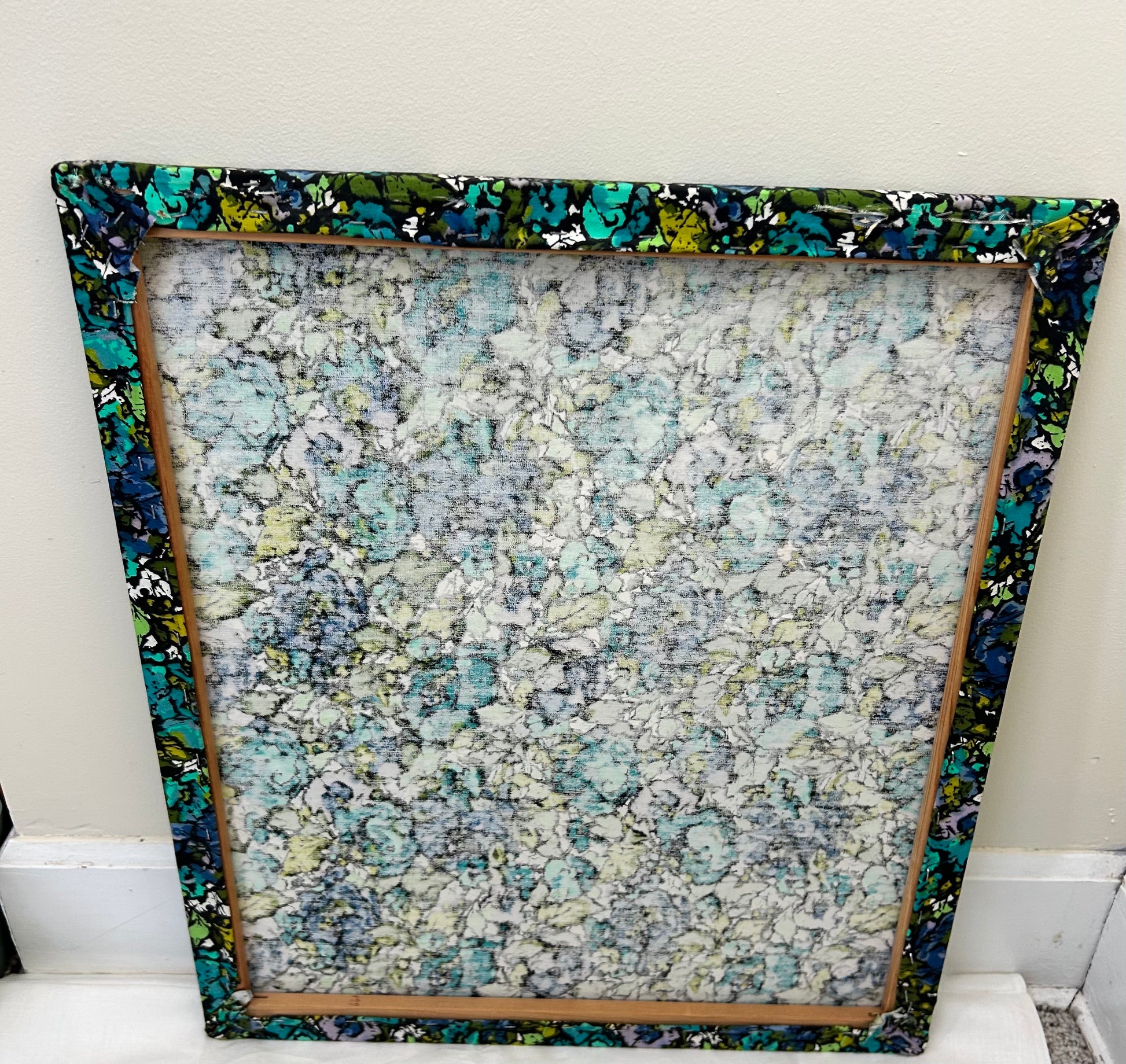 Vintage 1960's fabric canvas. Hand painted acrylic paint flower. Minor wear from age.