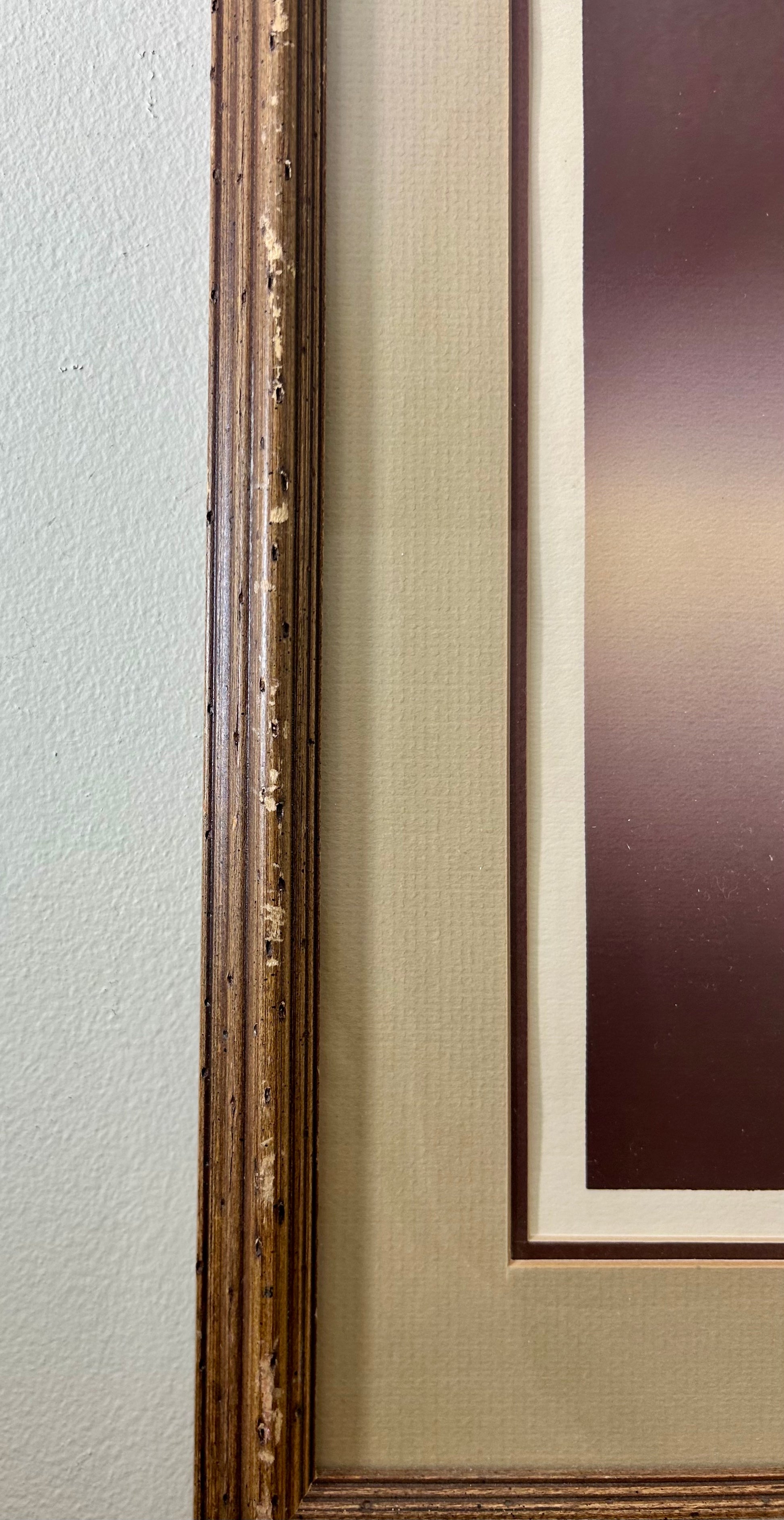 Vintage original dark wood frame with matting. Textured paper, handmade artwork. Called " Wood Duck" by John Fields. Hand signed and titled. Has Certificate on back. Minor wear on the frame.